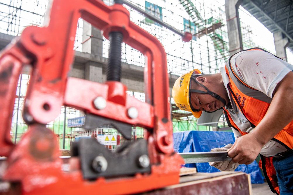 渝昆高鐵川渝段站房項目現場,工人正在施工。新華社記者唐奕 攝