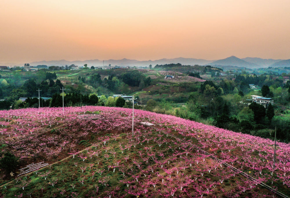 2023年3月,簡陽市首屆賞花季在連山村開幕,以“中國桃花源”為主場,多村鎮共連,村民變身農家樂老板,接待游客10萬余人次。人最多的一天,有村民光午飯就做了40桌,一個賞花季下來村民總增收達200多萬元。
