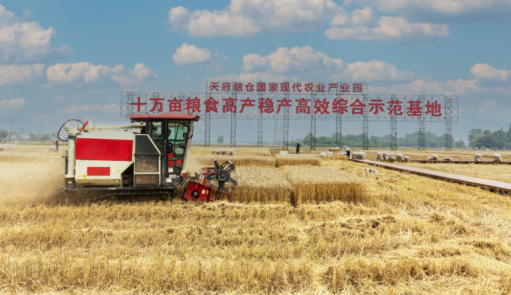 5月18日,天府糧倉產業園豐收畫面(崇州市委宣傳部供圖)