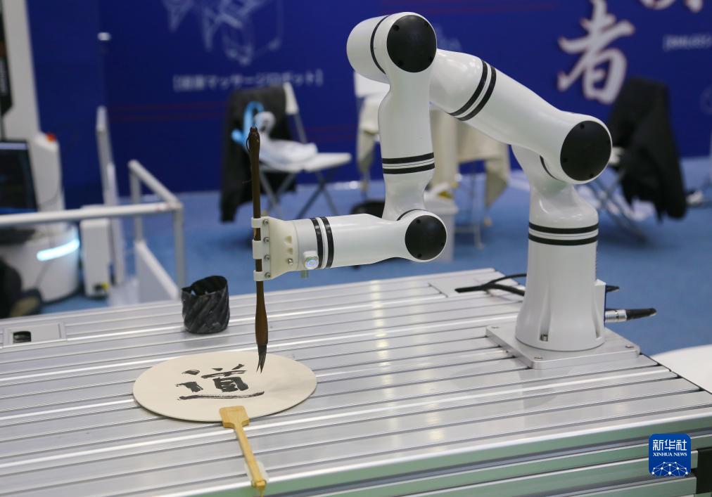 這是11月30日在日本東京舉辦的日本國際機器人展上拍攝的一款會寫書法的智能機器人。新華社記者 錢錚 攝