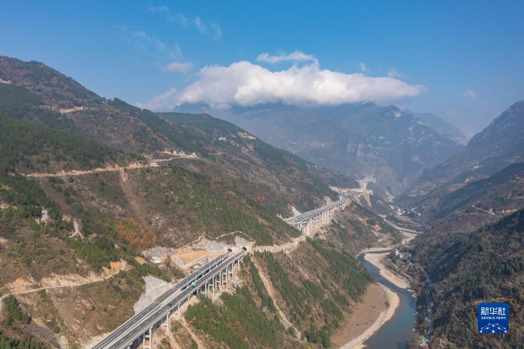 這是12月4日在重慶市巫溪縣拍攝的巫鎮高速巫溪互通(無人機照片)。新華社記者 黃偉 攝