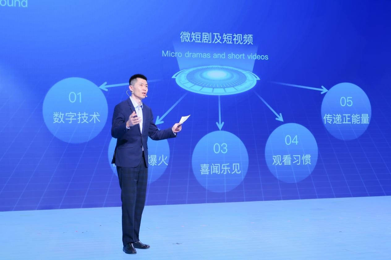 新華炫聞(北京)移動傳媒科技有限公司常務副總裁張濤推介“新華微短劇欄目”現場。新華網發