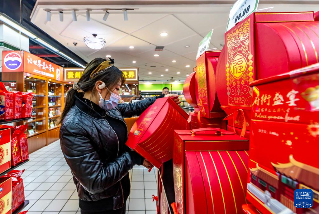 1月12日,消費者在貴州省黔西市一家超市選購商品。新華社發(范暉攝)