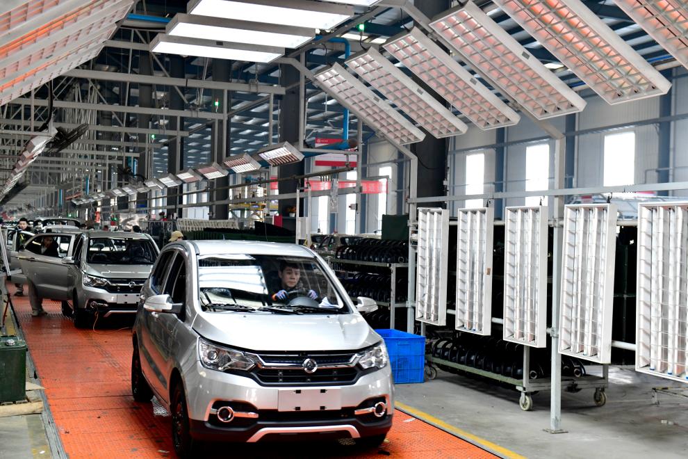 1月12日,在日照鴻日新能源汽車有限公司,工作人員在整車生產線上忙碌。新華社記者 郭緒雷 攝