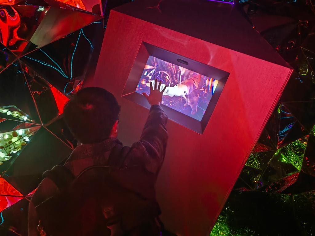 1月16日,一位觀眾在“三體沉浸式藝術展”上體驗互動裝置。新華社記者 董小紅 攝