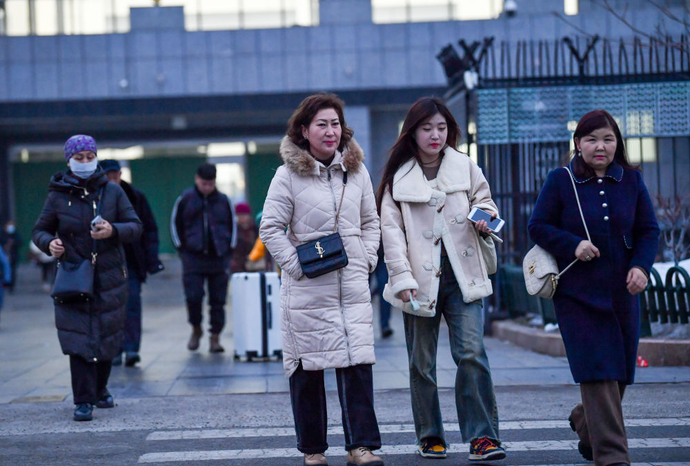 2024年1月15日,在新疆自貿試驗區霍爾果斯片區的中哈霍爾果斯國際邊境合作中心,商人通過快捷通道進入園區。新華社記者 趙戈 攝