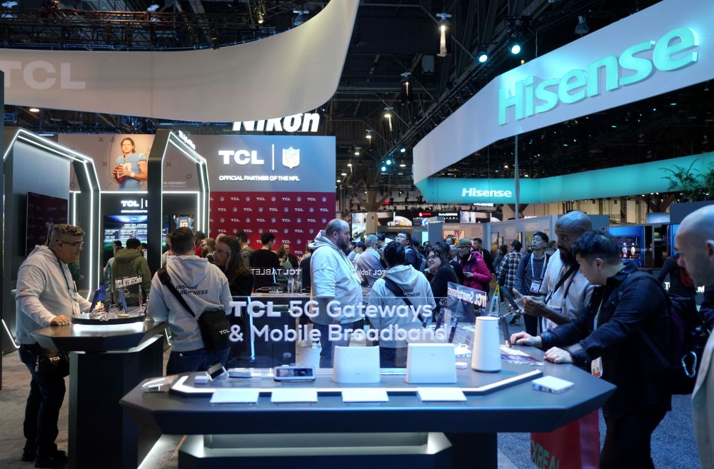 2024年1月11日,人們在美國拉斯維加斯消費電子展上參觀TCL公司(左)和海信公司(右)展臺。新華社記者 吳曉凌 攝