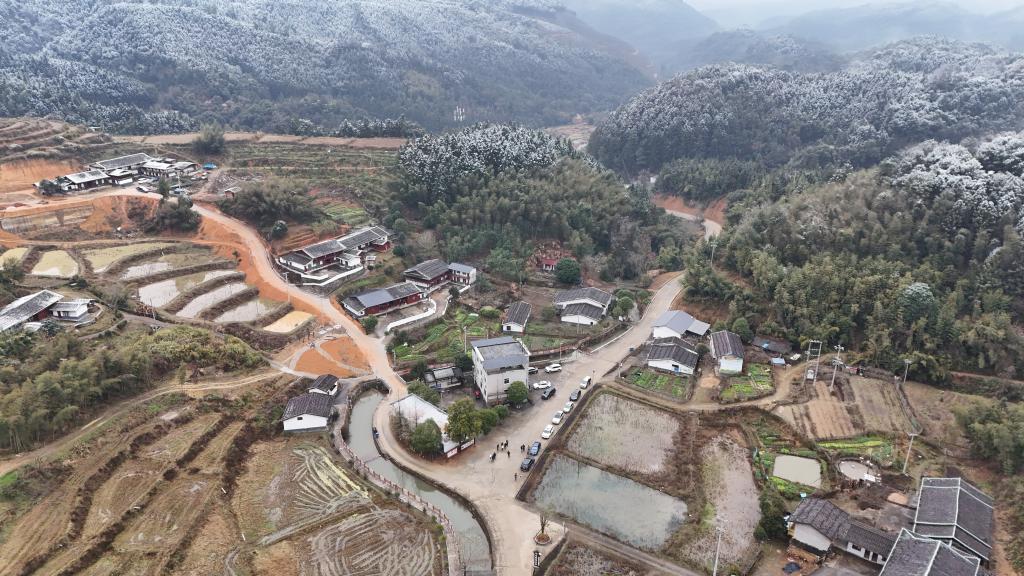 干凈整潔的黃溪坑村雪后村景。無人機照片(張凌欣 攝 )