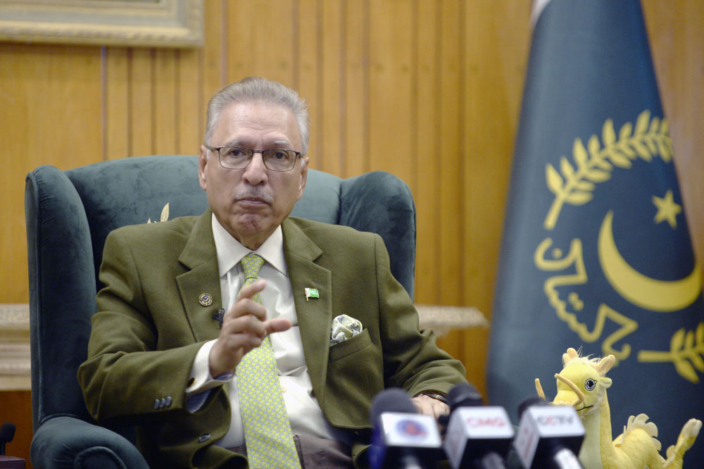 2月7日,在巴基斯坦伊斯蘭堡,巴基斯坦總統阿爾維接受新華社和其他中國媒體聯合采訪。新華社發(艾哈邁德·卡邁勒攝)
