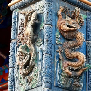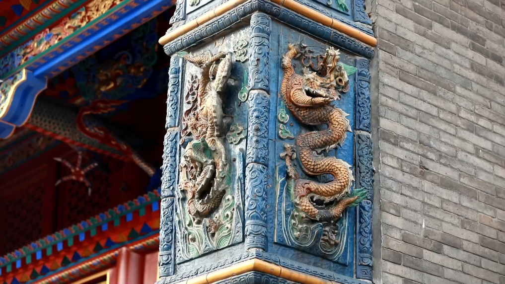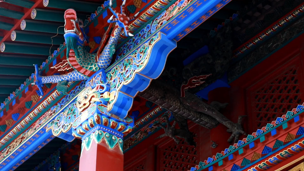 在有近400年歷史的沈陽故宮里,“龍”的元素隨處可見,特別是建筑上的“龍”,如大政殿的金龍盤柱、格扇門上鏤空雕刻的渾金團龍,崇政殿上的龍形抱頭梁和五彩琉璃墀頭,都代表了清早期的龍形生動健碩的典型特征。