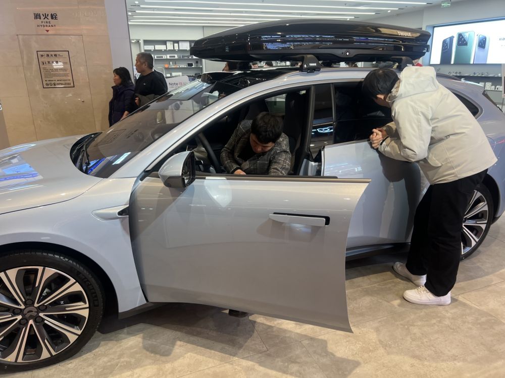 在安徽合肥萬象城購物中心,顧客體驗一款新能源汽車(2024年2月11日攝)。新華社發(楊元元 攝)