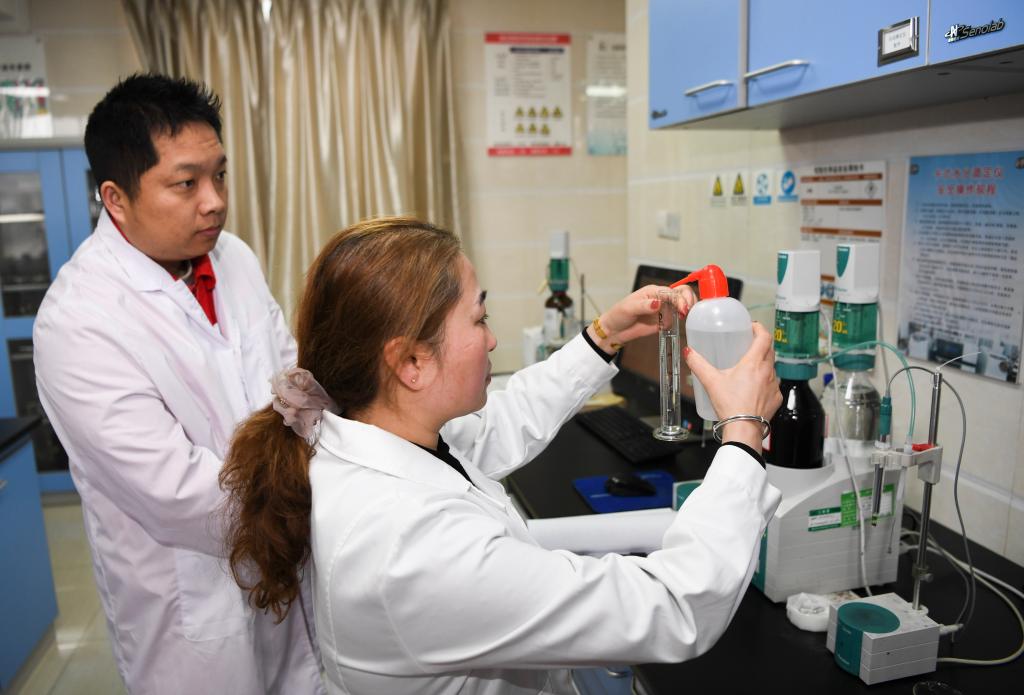 工作人員在重慶涪陵頁巖氣田油氣化驗室作業。