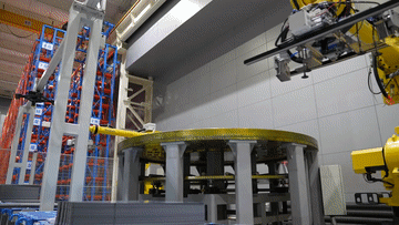 在哈電集團哈爾濱汽輪機廠有限責任公司的葉片加工智能化車間,工作人員對中小葉片數字化生產線上的運輸機器人進行調試。
