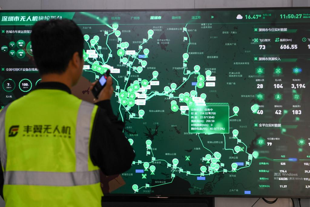 在豐翼科技(深圳)有限公司運營中心,機長對無人機進行調度。
