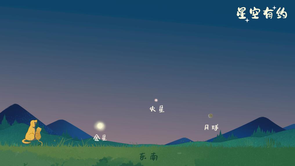 新華社天津3月6日電(記者周潤?。?月8日黎明時分,金星、火星和一彎細細的殘月將在東南方低空短暫“歡聚”,屆時如果天氣晴好,感興趣且能早起的公眾可嘗試觀賞這幕“雙星伴月”。