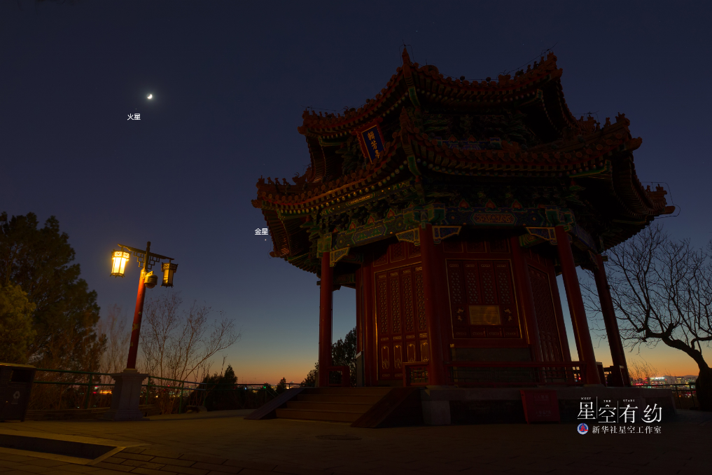 中國天文學會會員、天文科普專家修立鵬介紹,3月8日下午和3月9日凌晨,火星和金星相繼合月,我國都不可見。不過8日黎明時分,有短暫的時間可以看到金火伴月的美妙場景。