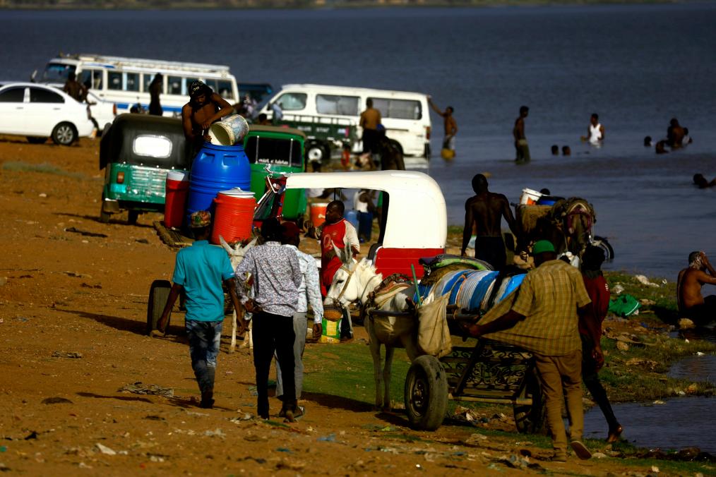 2023年4月17日,由于武裝沖突導致停水,蘇丹喀土穆市民到尼羅河打水。新華社發(穆罕默德·海德爾攝)