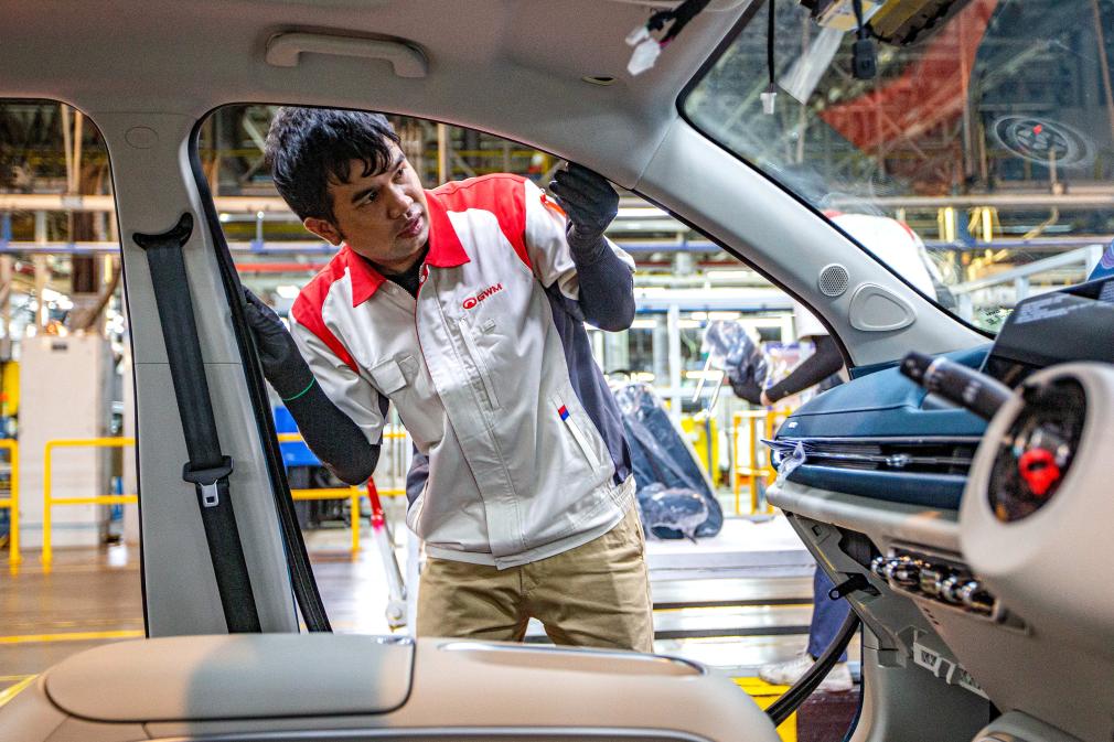 1月12日,工人在位于泰國羅勇的長城新能源汽車制造基地生產車間內工作。新華社記者王騰攝