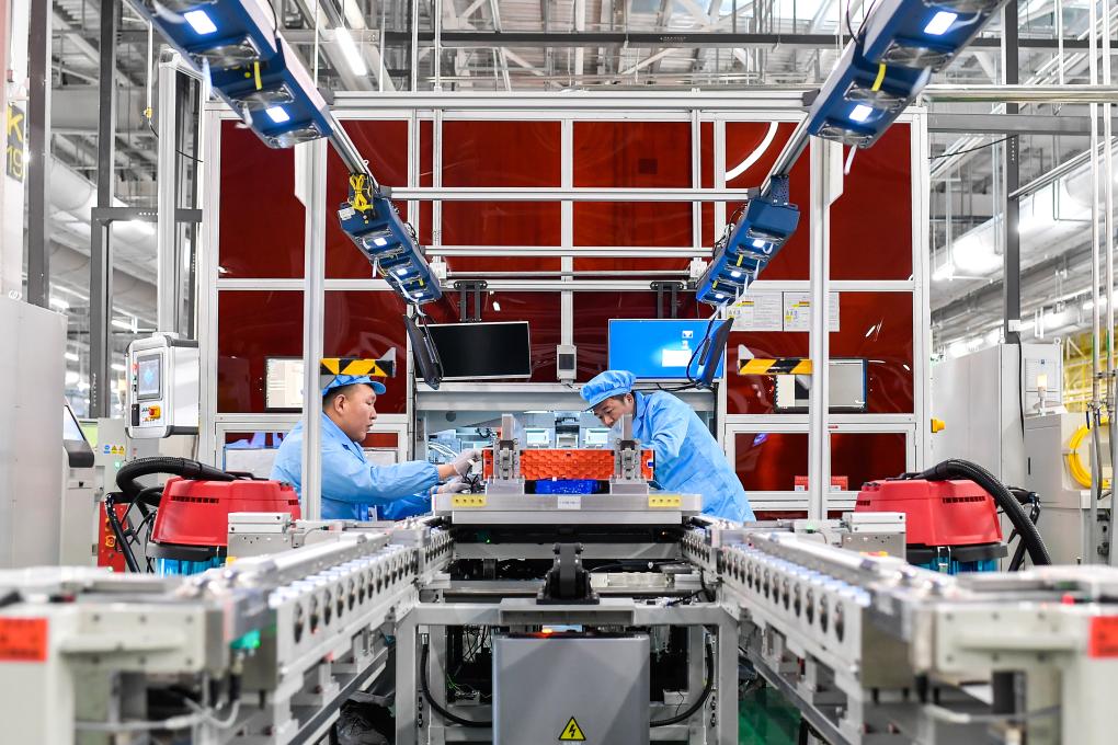 3月18日,在匈牙利比奧托爾巴吉,工人在蔚來能源歐洲工廠工作。新華社記者張帆攝