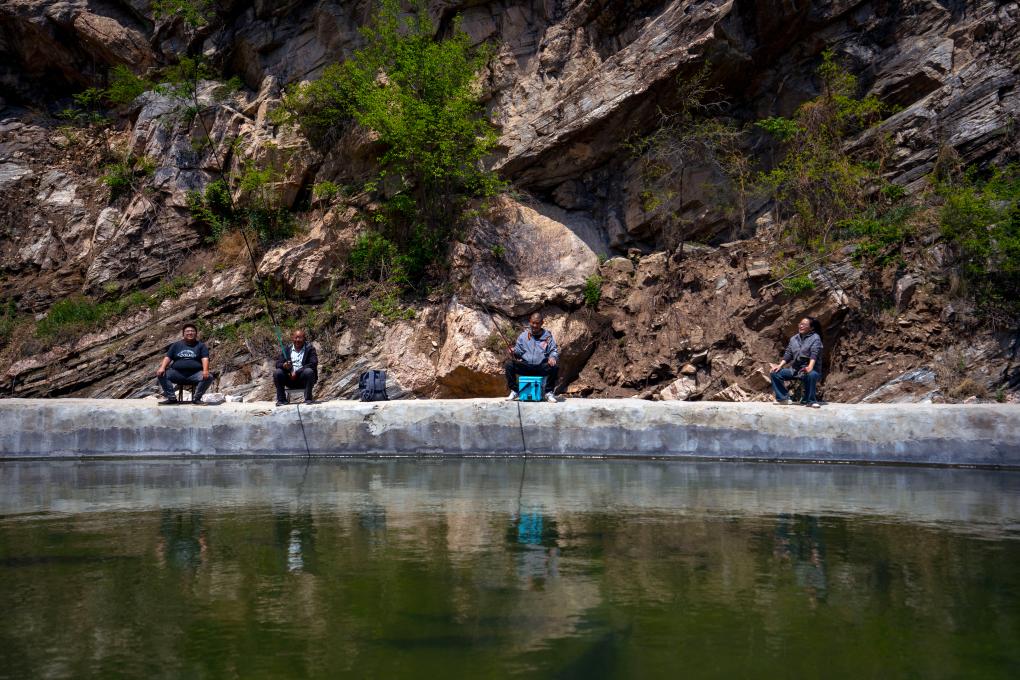 5月3日,游客在河北保定阜平縣駱駝灣村垂釣。新華社記者 鄒尚伯 攝