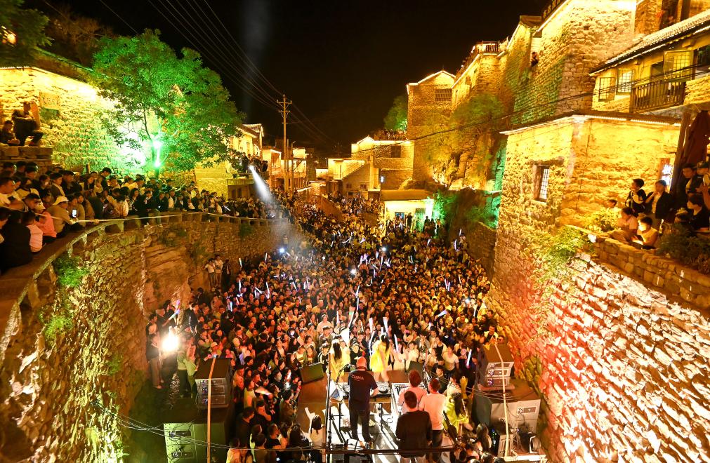“我們將現代與傳統相結合,推出了蹦迪、駐唱等一系列節目和新業態,為古老村落注入新活力?!鄙婵h更樂鎮宣傳委員趙飛說,五一假期日均游客達上萬人次。