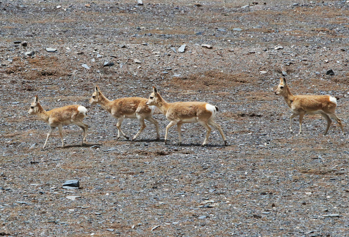 2024年5月15日,幾只藏羚羊在青海省玉樹藏族自治州可可西里草原上遷徙。CICPHOTO/王建中 攝