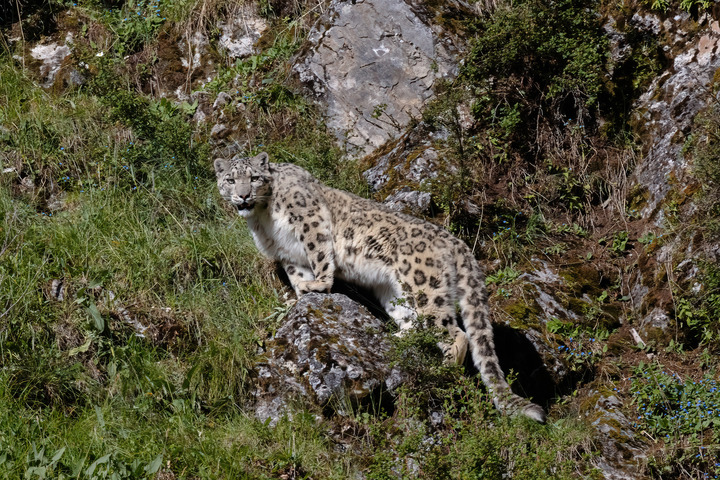 2022年8月6日,在青海玉樹藏族自治州雜多縣昂賽大峽谷內拍攝的雪豹。新華社發(姚牧陽 攝)