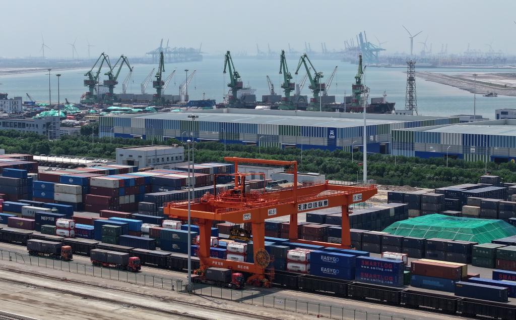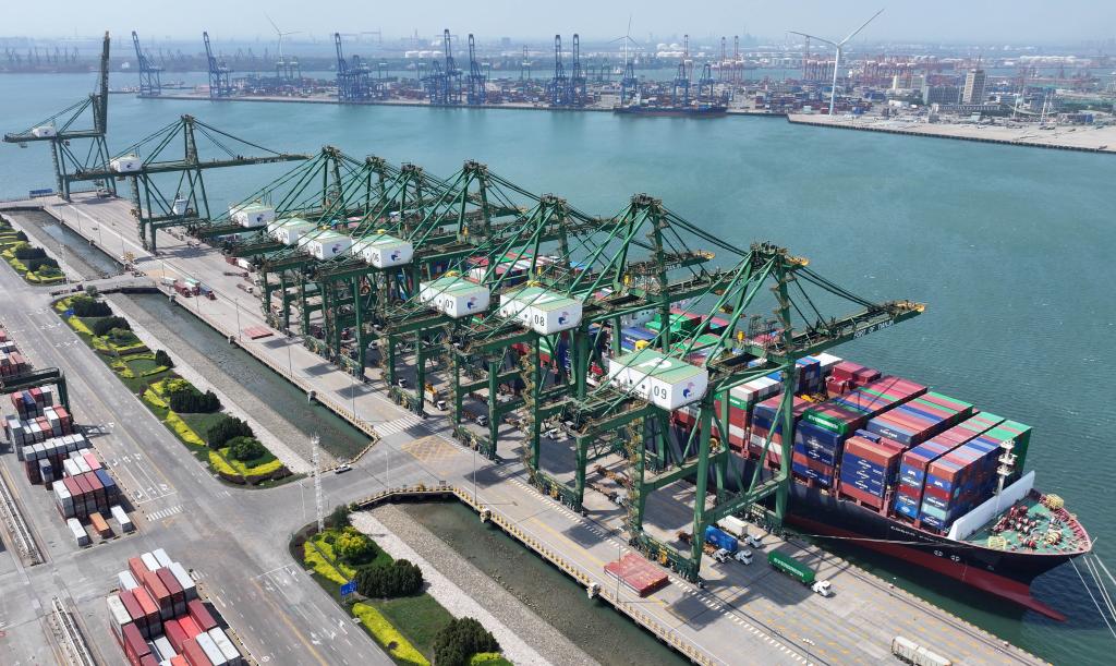 乘著京津冀協同發展和共建“一帶一路”的東風,依托港口戰略資源核心優勢,天津加快建設北方國際航運核心區。天津市港航局綜合業務處處長鄒鸞說,天津港通達全球180多個國家和地區的500多個港口。2024年1月至4月,天津港完成貨物吞吐量1.88億噸,同比增長3.5%,集裝箱吞吐量739.81萬標箱,同比增長6.2%,再創歷史同期新高,帶動天津市外貿規模進一步擴大。