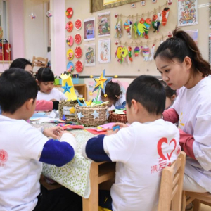 在北京大學醫學部幼兒園,融合班的老師與孩子們在制作“星燈”(2024年3月27日攝)。新華社記者 任超 攝