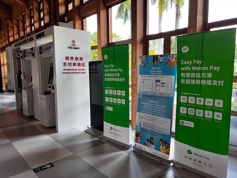 7月14日,三亞鳳凰國際機場的支付指引牌。新華社記者 陳子薇 攝