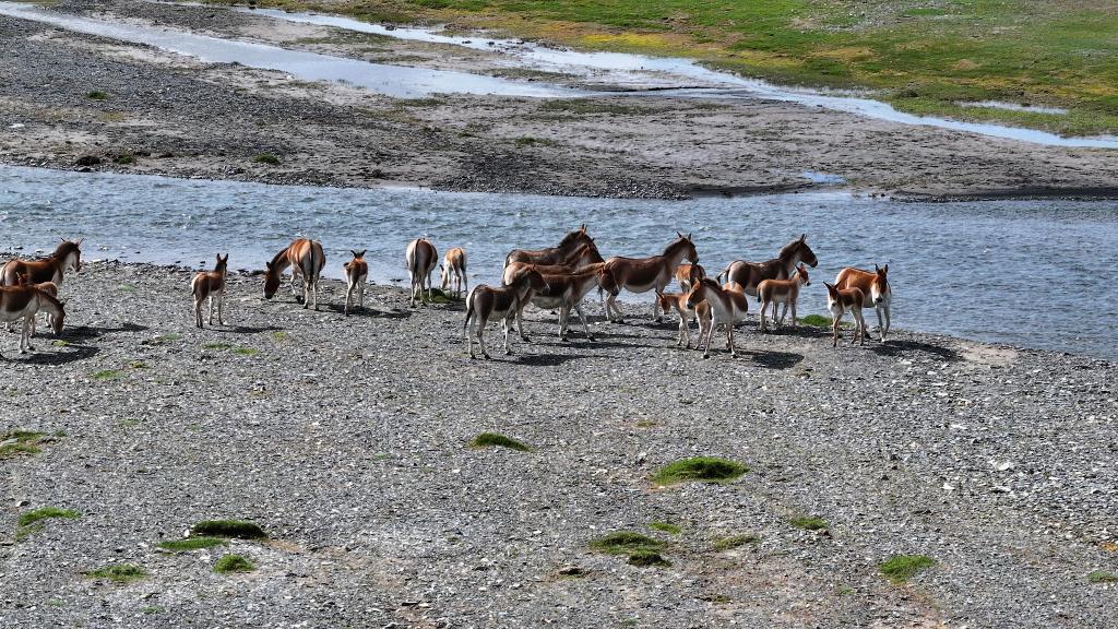 ↑在青海省玉樹藏族自治州曲麻萊縣境內拍攝的藏野驢(無人機照片)。新華社發(昂江攝)