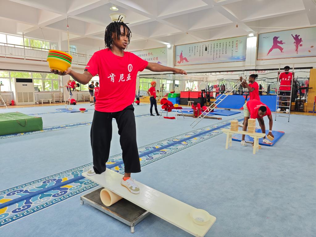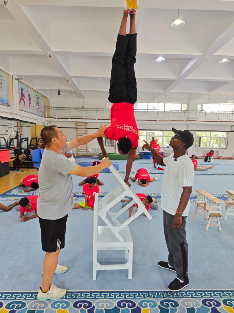 新華社石家莊8月26日電(記者白林、張粲)在享譽世界的雜技之鄉河北省吳橋縣,53歲的肯尼亞人馬蒂亞斯·卡維塔正在協助中國教練幫助非洲學員練習雜技。這是卡維塔第二次來中國。41年前他曾來華學習雜技。