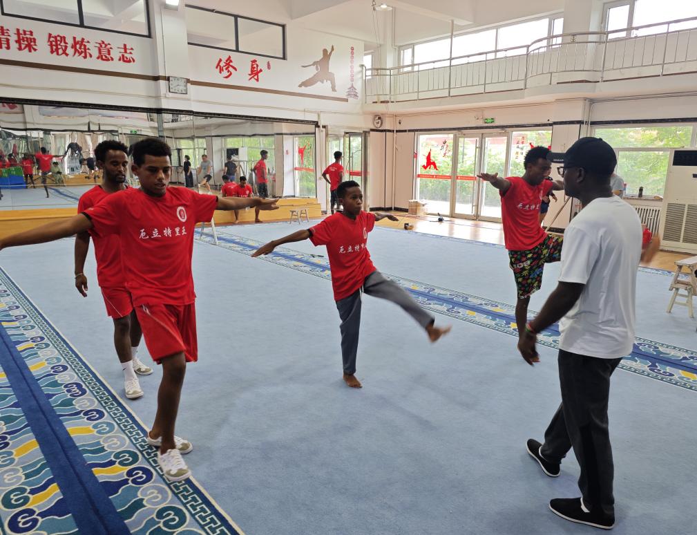 記者在訓練現場看到,卡維塔一會兒帶領厄立特里亞的學員練習踢腿,一會兒幫助肯尼亞學員學習高椅倒立,忙得不亦樂乎。因為卡維塔會講中文,他在課堂上成為非洲學員與中國教練之間交流的紐帶。