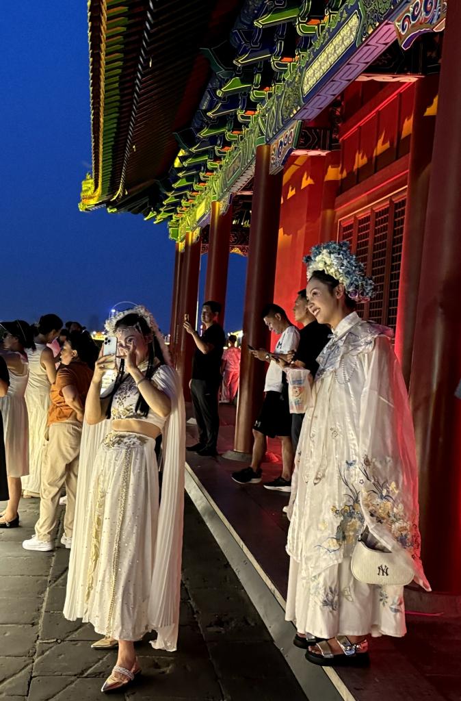 白天,正定古城人頭攢動,身著漢服的游客流連于古街古巷之中,傳統服飾與古樸建筑相得益彰。晚上,正定小商品夜市人聲鼎沸,氤氳的煙火氣點亮夜經濟、撫慰凡人心。
