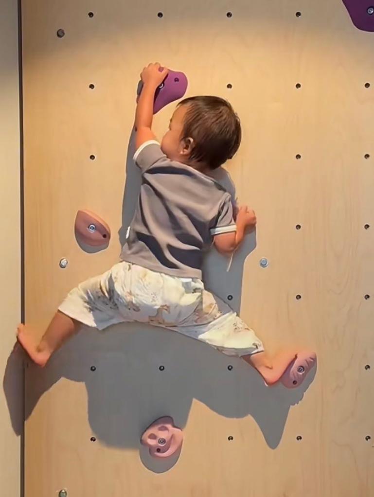 魏柳豐開始為女兒打造專屬的攀巖墻
