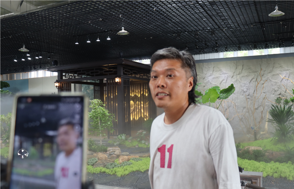走進位于“綠色”三產融合片區的慶祥偉業觀賞魚養殖基地,一個碩大的池子內游動著許多花色各異的錦鯉,配合著噴灑裝置制造的煙霧繚繞效果,幾名工作人員正通過手機向客戶推銷著各類觀賞魚。