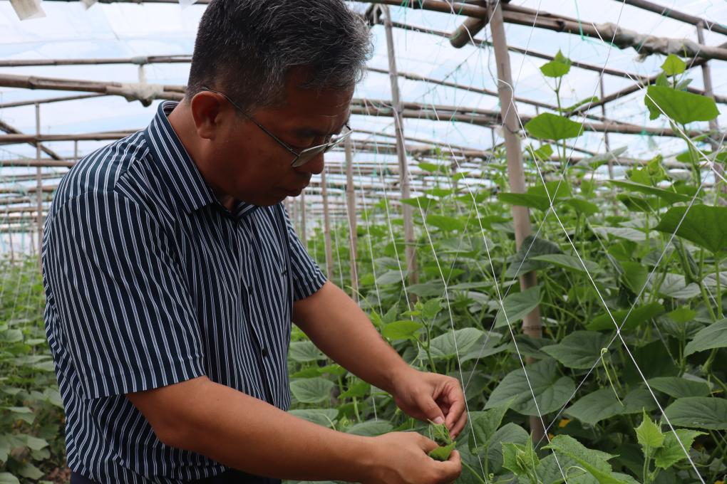 新華社天津9月13日電(記者郭方達)遇見龐金安時,他正在大棚里檢查黃瓜苗的長勢,前幾日陰晴不定,他心心念念的都是棚里的苗。這位衣著樸素的莊稼人,是天津德瑞特種業有限公司的董事長,也是遠近聞名的種業能手。