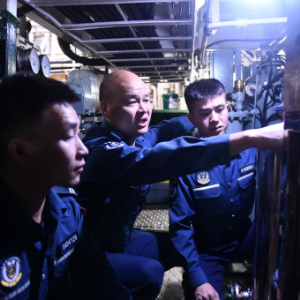 師父老潘知道了湯建維的想法,跟他說,在機艙工作就是特別辛苦。有一次執行巡礁任務,主機全速運行,突然“嘭”的一聲,2號主機緊急降速,老潘一查是進氣管墊片破裂,當時主機排氣管溫度達680度,需要人站在高溫排氣管中間的狹小空間操作,由于風高浪急,暈船嘔吐的同時還容易燙傷,就這樣一直搶修了一個多小時才把故障排除,最終在指定時間前趕到了目的地。