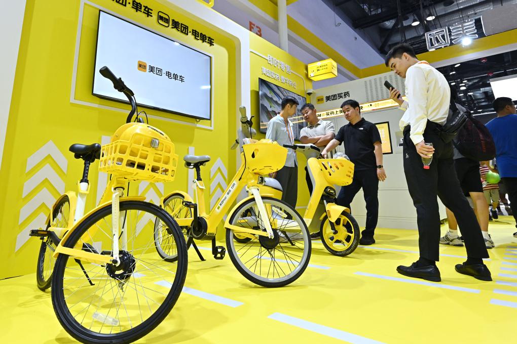 2023年9月2日,觀眾在服貿會上了解共享單車、助力自行車和電單車等低碳出行方式。新華社記者 李鑫 攝