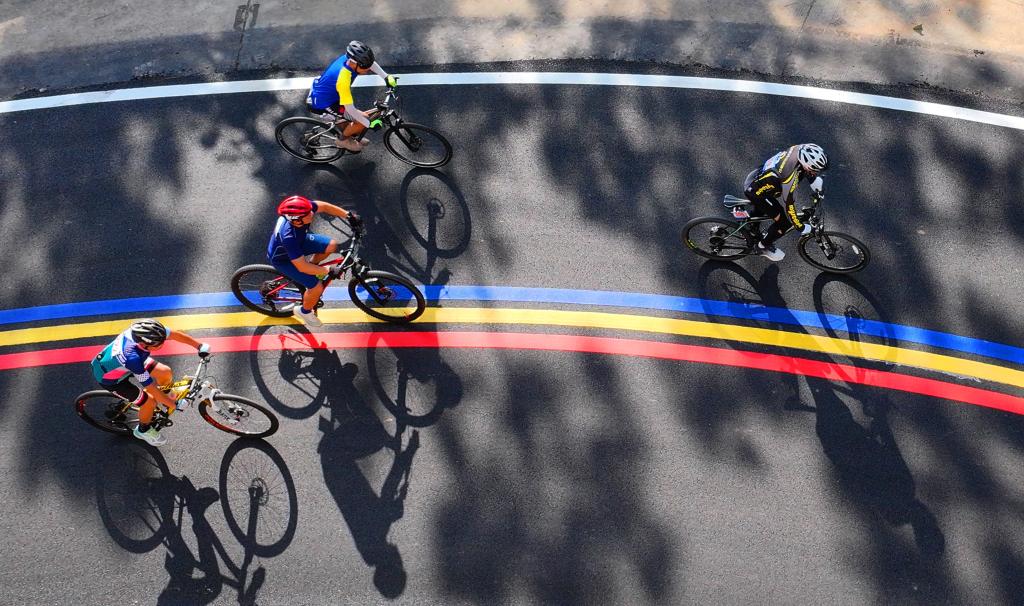 9月8日,選手在2024年湖南衡山九觀湖環湖自行車賽騎行。新華社發(曹正平攝)