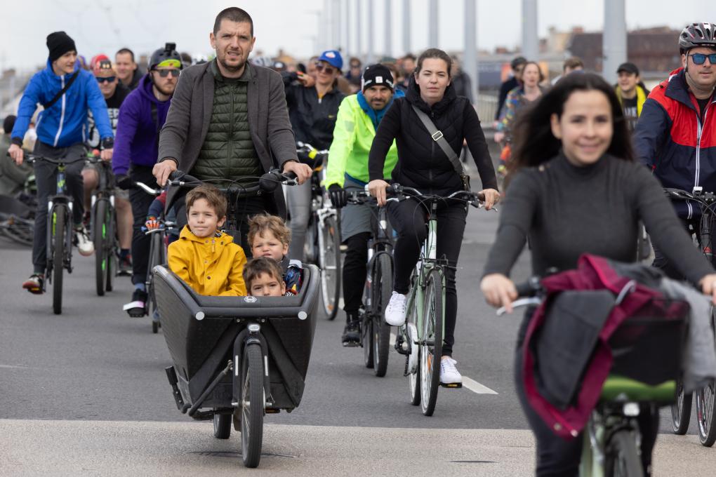 4月20日,匈牙利布達佩斯舉辦自行車騎行活動,倡導人們低碳出行。新華社發(弗爾季·奧蒂洛攝)