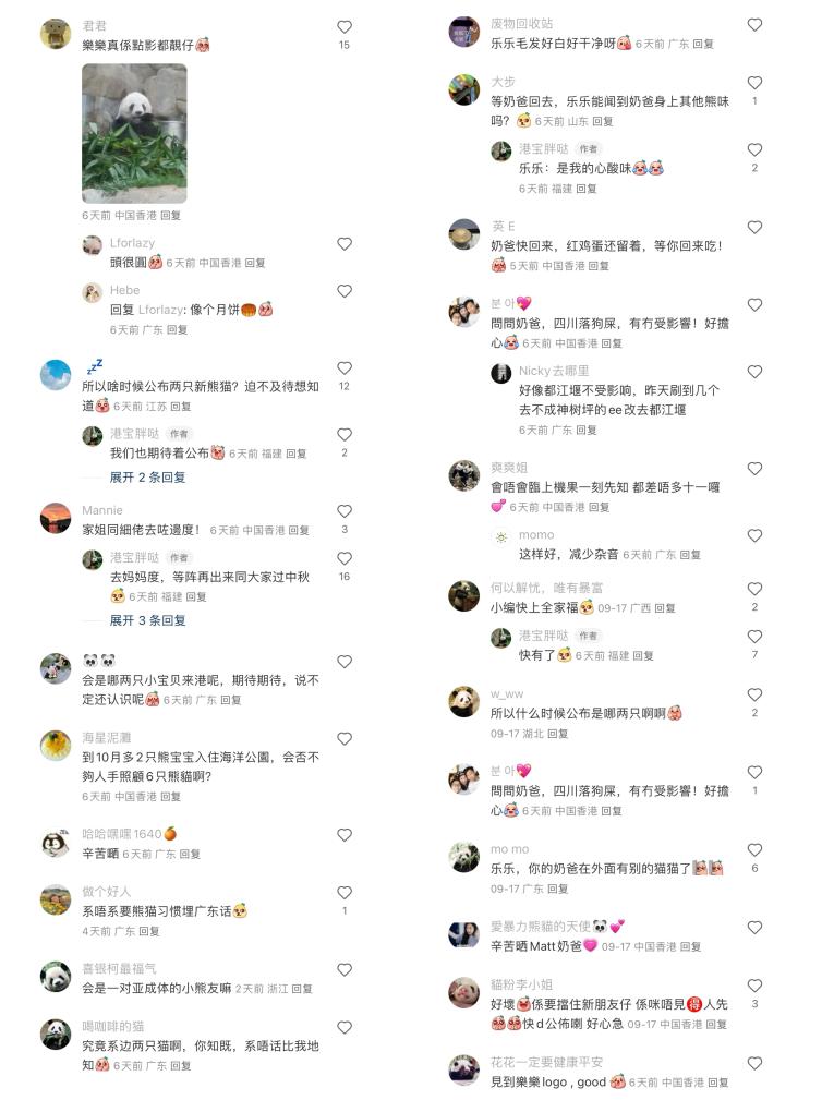 可愛的國寶牽動眾多“熊貓迷”的心,隨著贈港大熊貓消息的更新,網友們熱議的話題從“新熊貓是誰”“新熊貓何時能看到”,變成了“等‘奶爸’回去,樂樂能聞到‘奶爸’身上其他熊味嗎”“照顧6只熊貓人手夠嗎”“給新熊貓起什么新名字”……