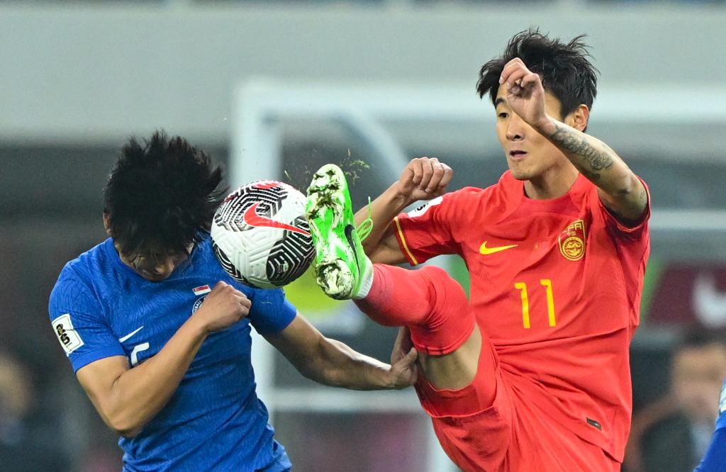 2024年3月26日,在天津舉行的2026年世界杯亞洲區預選賽36強賽C組比賽中,中國隊主場4:1戰勝新加坡隊。圖為韋世豪在比賽中。新華社記者 孫凡越 攝