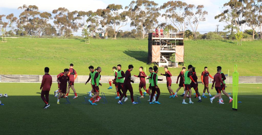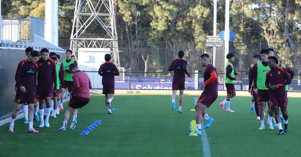 2024年10月7日,中國國家男子足球隊進行了抵達阿德萊德后的第一次訓練課。新華社記者 王子江 攝