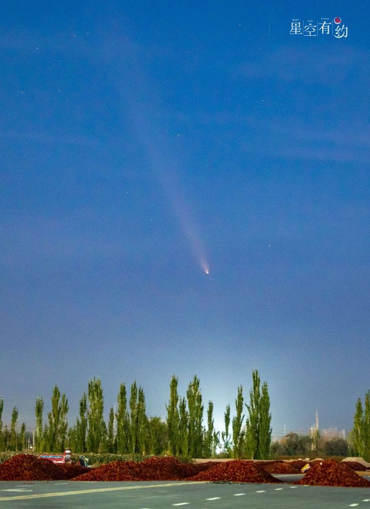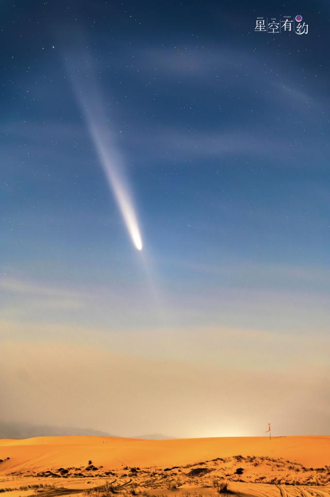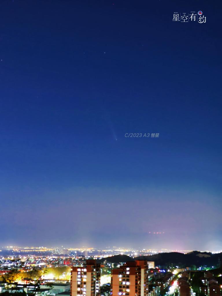 如何在茫茫天宇找到這位“天外來客”的身影?蔣晨明說,最近一段時間,日落后不久,這顆彗星都會準時出現在西方偏南的夜空。時間越往后,這顆彗星的移動方向越靠南,地平高度也會越來越高,但同時亮度也會變差。如果天氣晴好,感興趣的公眾可以擇機尋找一處無燈光影響且視野開闊的場所,用肉眼或借助相機、雙筒望遠鏡、小型天文望遠鏡耐心地尋找,就有機會發現它的身影。