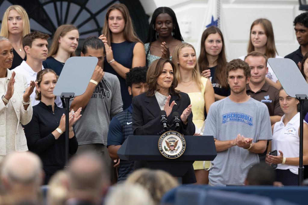 7月22日,美國副總統哈里斯(前中)在美國華盛頓白宮南草坪出席活動。 新華社記者 胡友松 攝