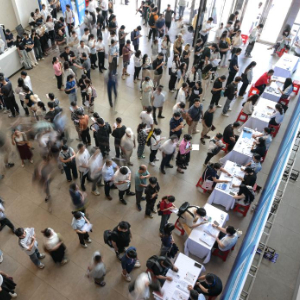 2024年9月28日,眾多求職者參加在??谑信e辦的招聘會。 新華社記者 蒲曉旭 攝