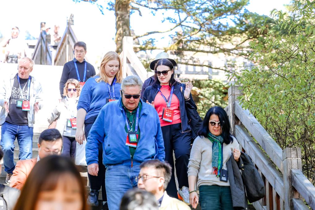 海內外旅行商在武當山玉虛宮參觀游覽。湖北省文化和旅游廳供圖