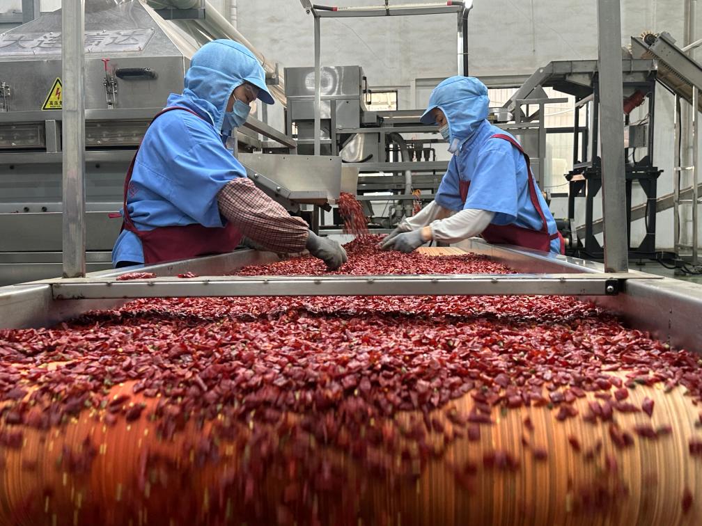 辣椒面、辣椒醬、辣椒小吃……走進中國辣椒城區域內的遵義紅滿坡農業發展有限公司的生產車間,里面各種辣椒原料香氣撲鼻,公司各生產線正有序運轉。該企業董事長唐捷介紹,公司依托自有辣椒基地,建設有3.8萬平方米的現代化工廠,一年產值可達1.3億元左右。