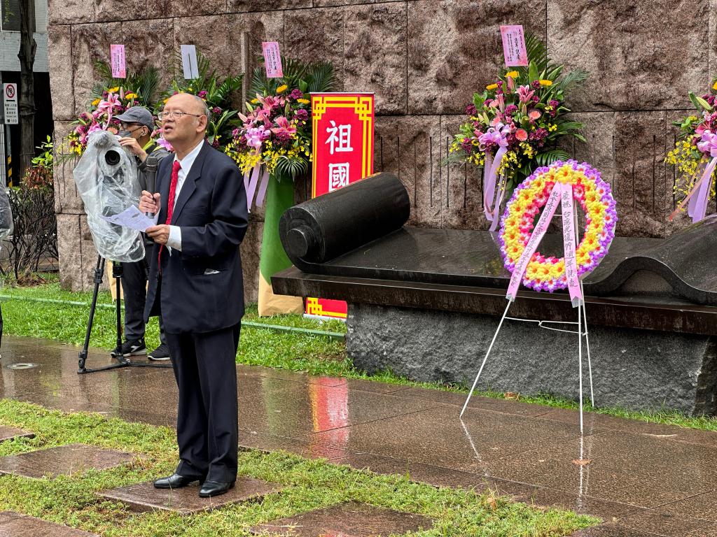 10月25日,統一聯盟黨主席戚嘉林在紀念臺灣光復79周年活動上致辭。新華社記者 王承昊 攝